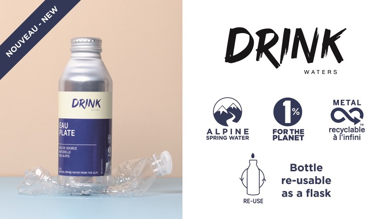 Le bottiglie Drink Waters in alluminio riciclato contengono acqua di sorgente delle Alpi e sono riutilizzabili all'infinito in bottiglie d'acqua, consentendo così agli hotel di agire per il pianeta riducendo il numero dei rifiuti di plastica.
