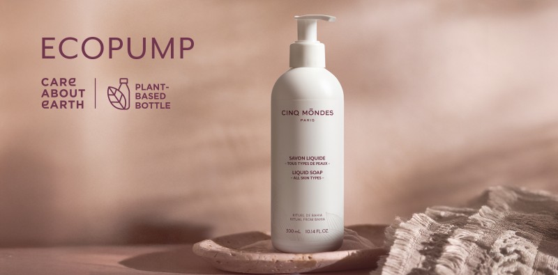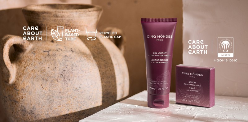 Ispirata all'ancestrale Rituale di Bahia, questa linea di prodotti per hotel, realizzata con il 98% di ingredienti naturali e in linea con il programma Care About Earth di Groupe GM, invita gli ospiti a un vero e proprio viaggio sensoriale di relax e appagamento, offrendo momenti di comfort e benessere. La linea di prodotti per hotel Cinq Mondes è arricchita dalla fresca fragranza "Rituel de Bahia", creata dalla rinomata profumiera Olivia Giacobetti. Le note luminose di limone e acqua di cocco si fondono con una calda base di legno di cedro, evocando la lussureggiante purezza delle cascate amazzoniche e offrendo agli ospiti un'esperienza sensoriale al tempo stesso rilassante e rinvigorente.